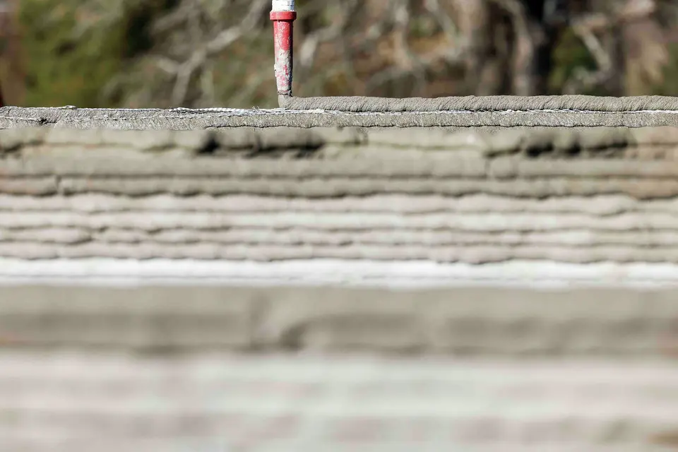 Craig Pettit, president of MRB Robotics monitors the 3D printer as it adds a layer of concrete at a self-storage facility on Tuesday, Jan. 10, 2023 in Payne Springs.